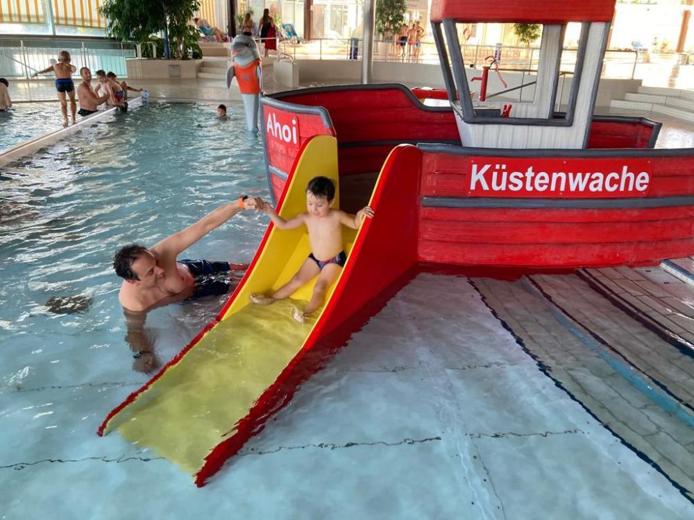Por la tarde decidimos hacer una cosa diferente. Fuimos a Freudenstadt, a 46 km. de Cawl. Y fuimos a pasar la tarde en Panorama Bad, un centro acuático con varias piscinas cubiertas, descubiertas, toboganes, plataformas de saltos, piscinas para niños/as pequeños, etc.