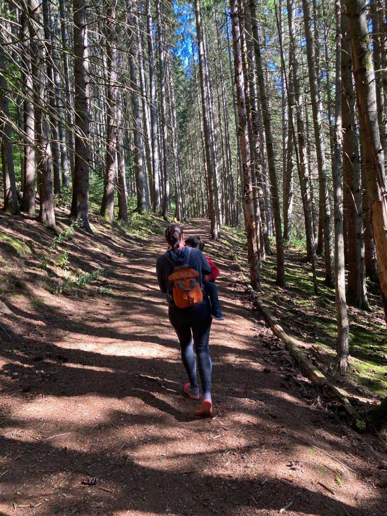 Aparcamos abajo, al lado de la carretera, donde hay un pequeño parking y subimos a pie por un sendero. No es muy largo, son solo 400 metros. Pero no es viable ir en cochecito ya que es un sendero de montaña con mucha pendiente.