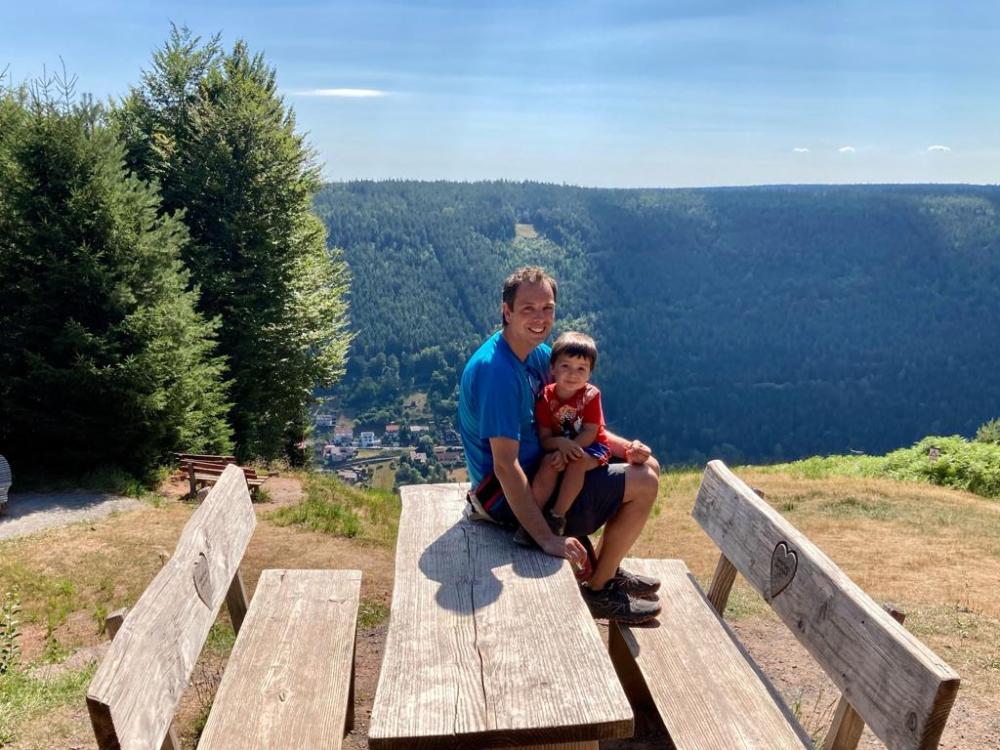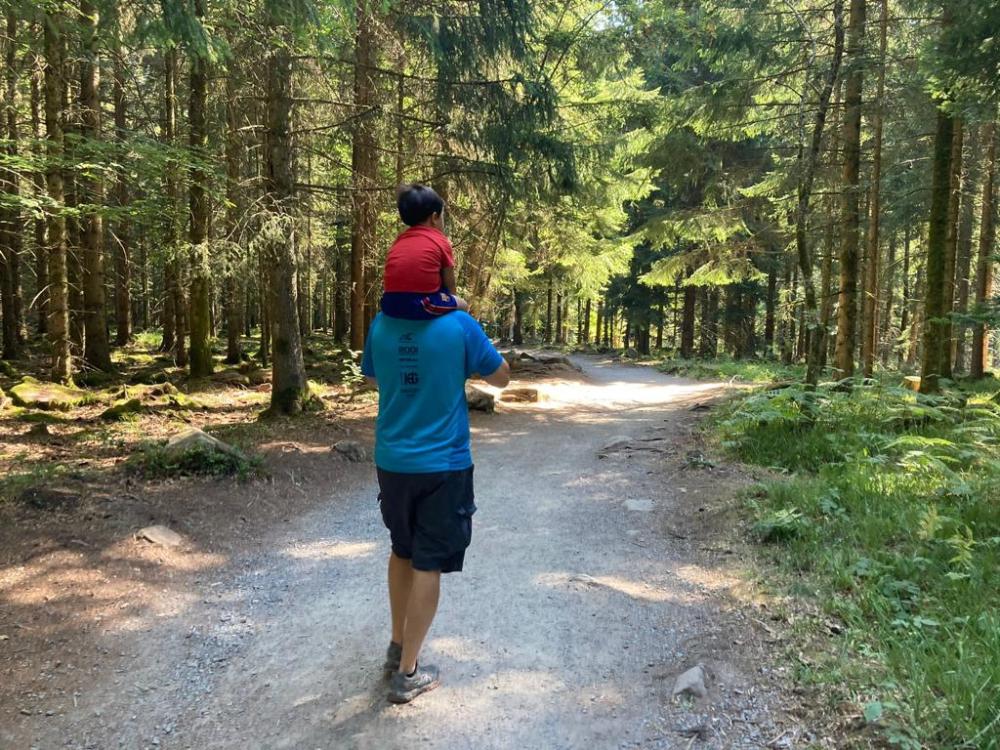 El parking costó 6€. Una vez aparcados empezamos haciendo la excursión de Märchenweg Das Kalte Herz. Se trata de una ruta circular de 3,2 km. que se puede hacer con el cochecito y es muy fácil de seguir. Solo hay que ir siguiendo los carteles de “Märchenweg”. El único problema es que cuando fuimos no sabíamos que lo podríamos haber hecho con el cochecito. Así que el pobre peque tuvo que andar los casi 3,2 km y terminó agotado.