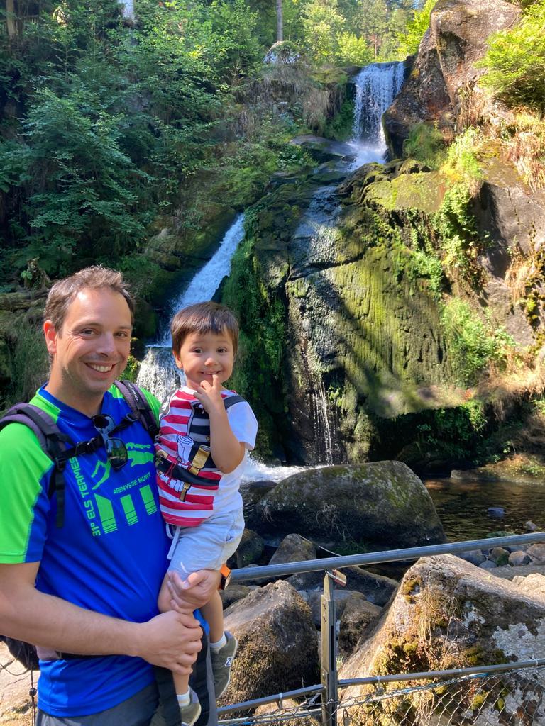 Una vez terminada la competición de cucos, fuimos en coche hasta el pueblo de Schiltach, a 31 km. de distancia. Es un pueblecito con mucho encanto, con calles empedradas y donde puedes pasear al lado de la orilla del río. Y si estás en agosto a 40 grados como era nuestro caso, incluso puedes darte un bañito para refrescarte como vimos que hacían los niños/as de Schiltach. Y, evidentemente, ¡nosotros también lo hicimos! Una vez ya más fresquitos, nos volvimos hasta Eisenbach, a 45 km. de Shiltach.