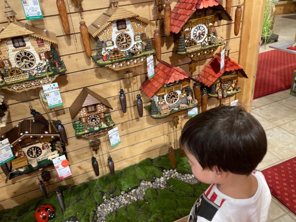 Después cogimos el coche para ir a ver los dos relojes de cuco más grandes del mundo. No queda claro cuál de ellos es el más grande, ya que los dos compiten entre sí y cada uno se adjudica el título honorífico de ser el más grande del mundo.