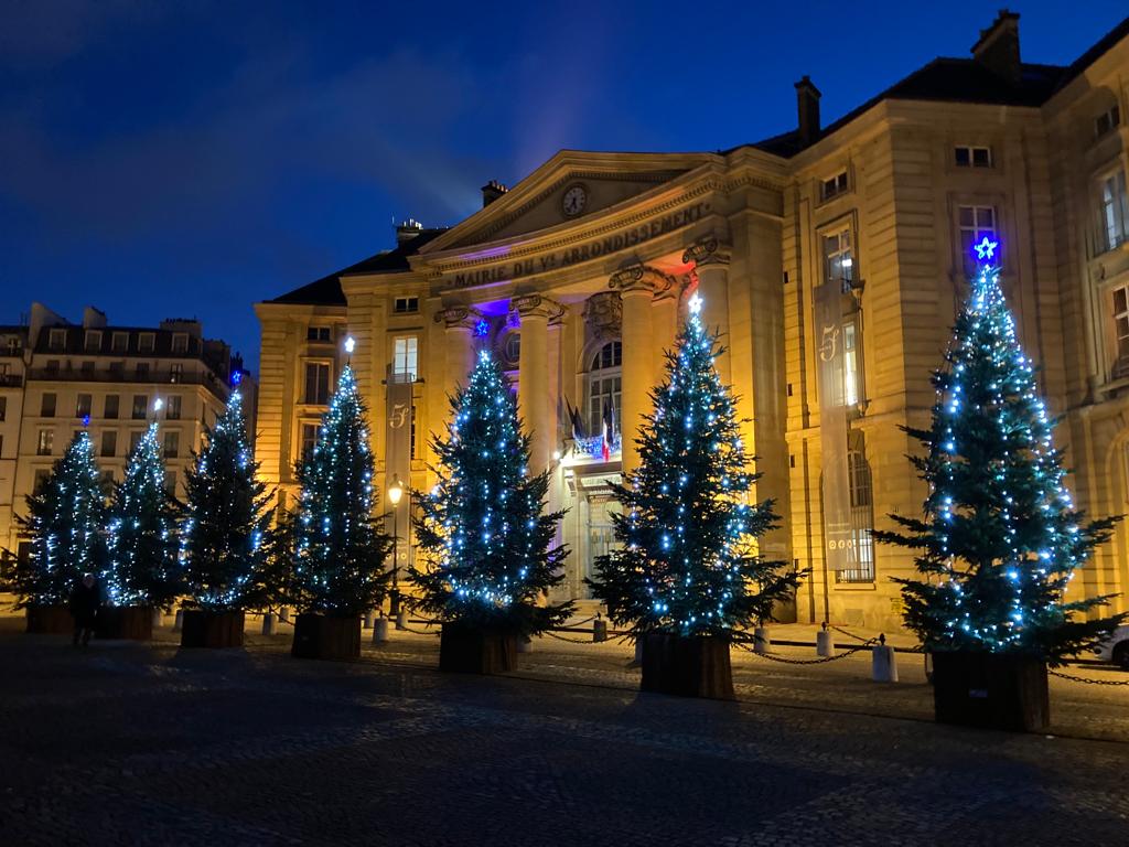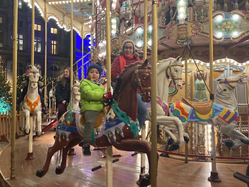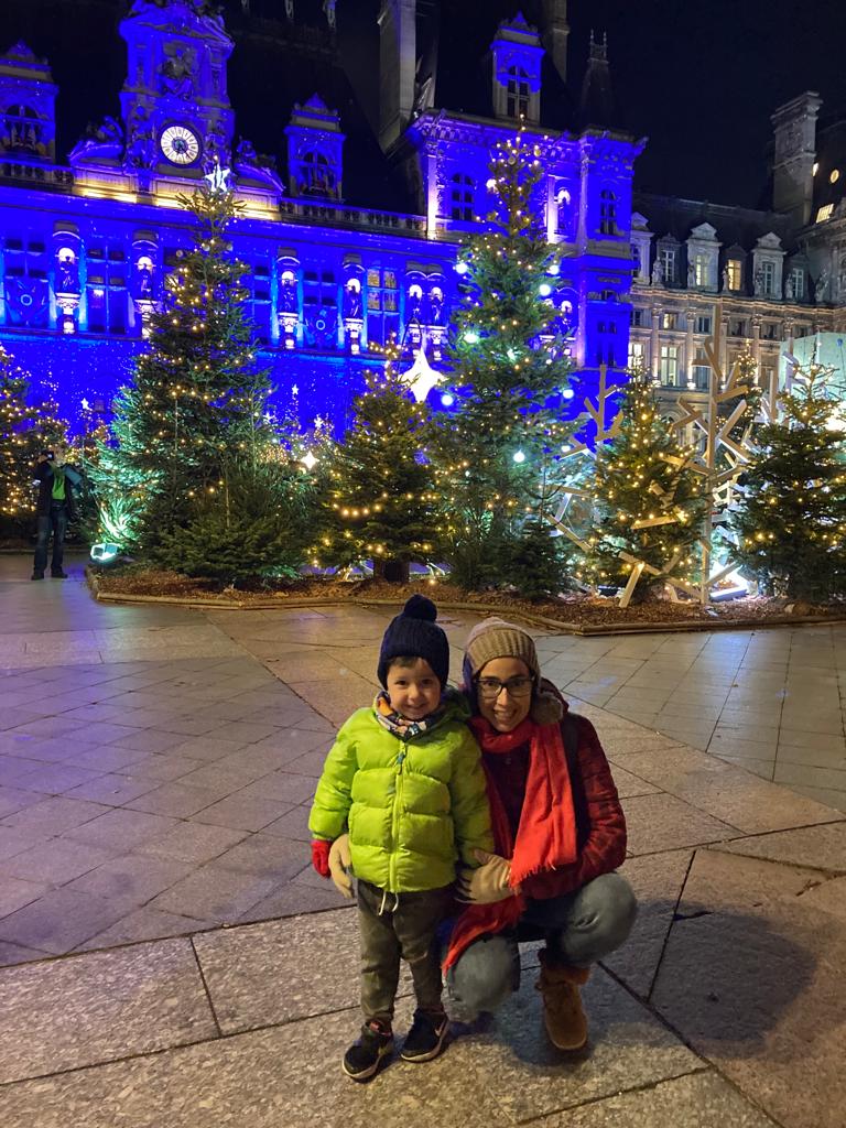 También fuimos andando hasta el Panteón, la Universidad, la Catedral de Notre-Dame y terminamos nuestro primer día en París visitando el Hotel de Ville, es decir, el ayuntamiento, donde había un parque de Navidad con un tiovivo gratuito que hizo las delicias de nuestro peque.