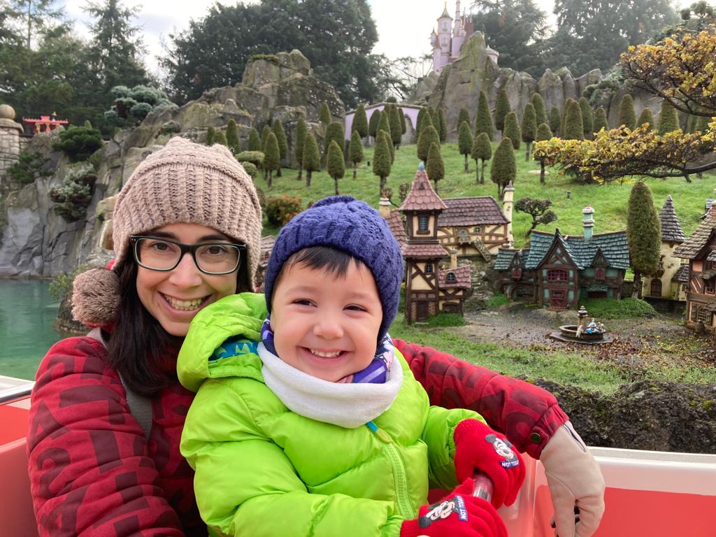 La idea que teníamos era esperar a las 20:00h, que cerraban el parque con un espectáculo de drones. Pero el día había sido muy intenso para el peque. Tenéis que pensar que era diciembre. Hacía mucho frío, a las 17:00h ya era noche cerrada y el peque estaba agotado de tantas emociones. Así que a eso de las 18:00h decidimos volver tranquilamente a París con el tren.