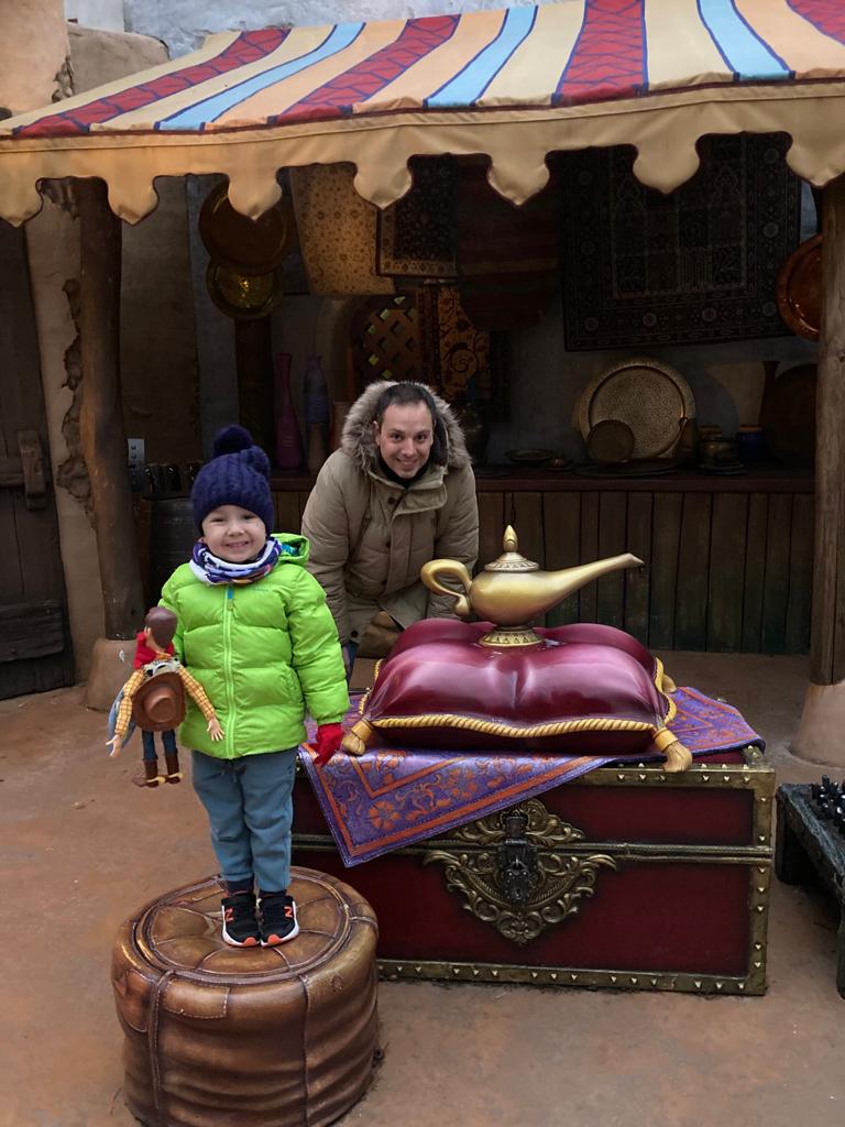Nos subimos con él a la atracción de Piratas del Caribe. Luego también nos subimos a las atracciones de Star Wars e Indiana Jones, aunque por turnos, ya que el niño era demasiado pequeño aún para este tipo de atracciones.