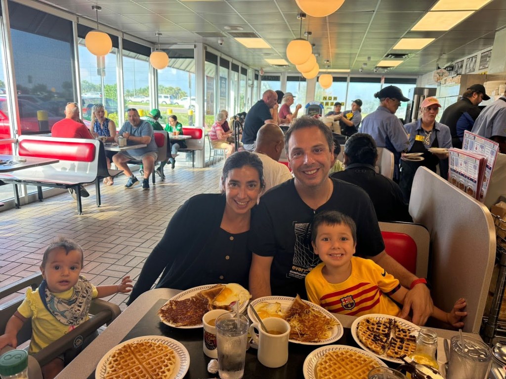 Antes de salir, al ser domingo y tener Eva y Derek fiesta en el trabajo, nos llevaron a hacer un típico desayuno estadounidense de los domingos. Concretamente nos llevaron a desayunar al Waffel House, una cadena de restaurantes americana donde comimos el desayuno estrella de la cadena: el All-Star Special. Un desayuno que contiene dos huevos fritos, bacon, patatas fritas, un sándwich y un gofre que puedes bañar con sirope. ¡Una bomba de calorías típica americana!