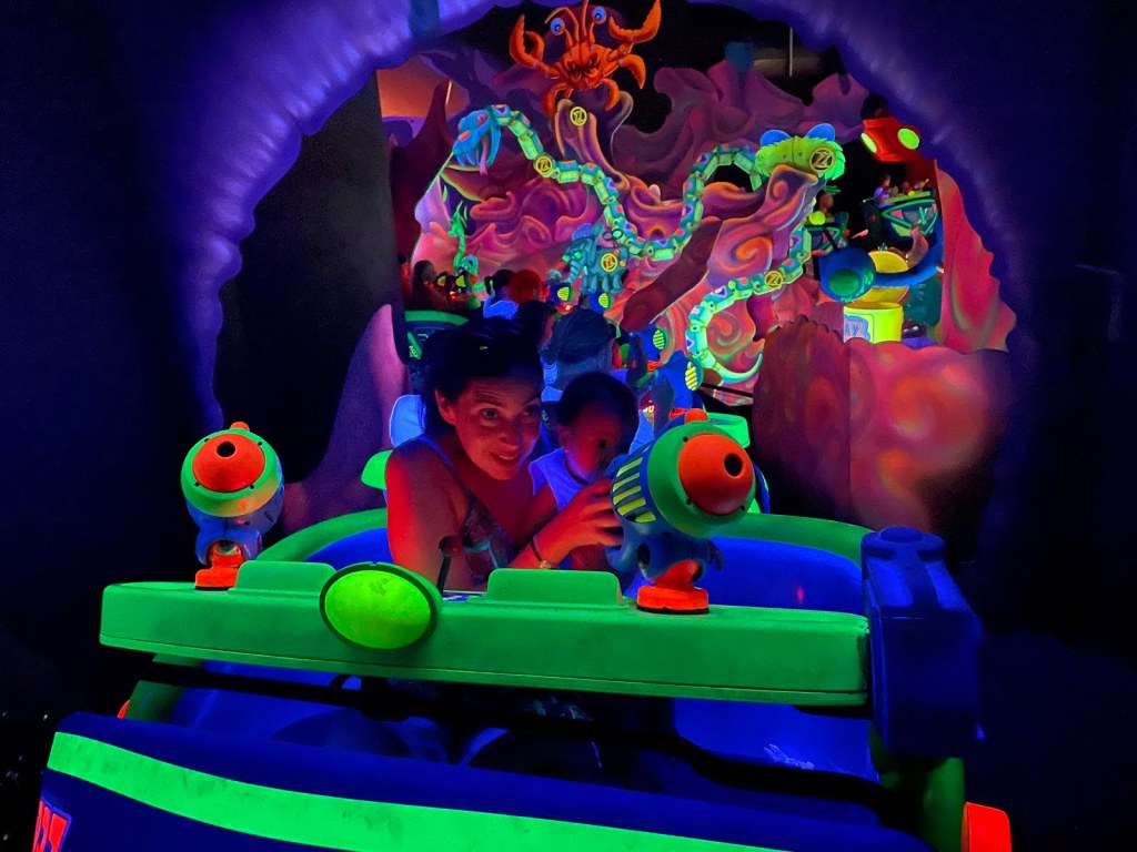 Primero fuimos a la atracción de Peter Pan, Peter Pan’s Flight. Y a continuación fuimos a It’s a small world, un divertido paseo en barco en el que viajas a través de los continentes. Seguidamente fuimos a la atracción de la Sirenita, Under the Sea y a la de Buzz Lightyear, Buzz Lightyear’s Space Ranger Spin, que hizo las delicias de Guillem.