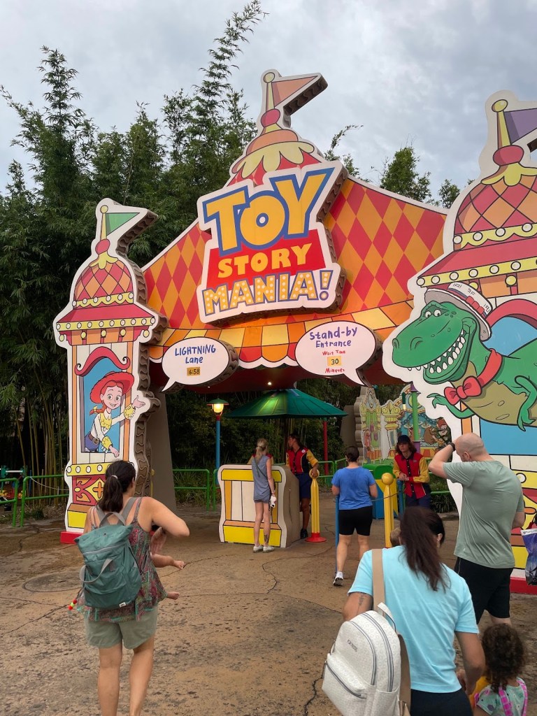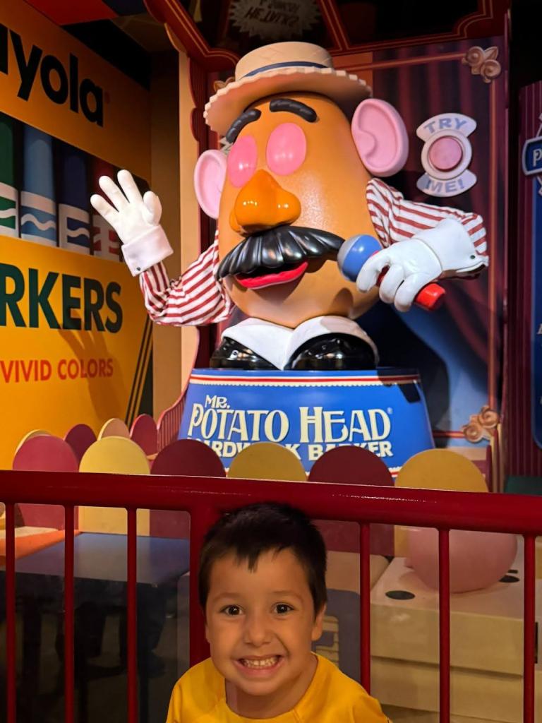 Luego ya se unieron a nosotros Eva y Derek y fuimos con ellos a Toy Story Land donde nos subimos a Toy Story Mania, una emocionante atracción 4D donde tienes que disparar a una serie de objetos en movimiento y que hizo las delicias de Guillem.
