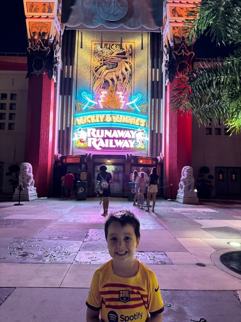 Así que, puntuales en la cola de entrada, cuando abrieron las puertas nosotros (y el resto de la gente…) fuimos todos en masa directamente a la atracción Avatar Flight of Passage. En las atracciones donde ni Guillem ni Laia se podían subir, utilizábamos el “Rider Switch”. No lo tienen en todas las atracciones, pero sí en la mayoría. El “Rider Switch” se puede utilizar en casos como el nuestro en el que algunos de los miembros del grupo no pueden subirse a esas atracciones. Para no hacer pues dos colas interminables, primero subía uno de los adultos haciendo la cola entera. Y, una vez salía, el segundo adulto pasaba por la fila del “Rider Switch” donde te llevaba directamente a la atracción sin prácticamente hacer cola.