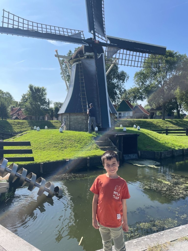 El Zuiderzeemuseum abre a las 10:00h. Llegamos unos 10 minutos antes, así que entramos de los primeros. El día anterior habíamos comprado online las entradas que incluían el trayecto en barco: 19€ por adulto, 13€ por Guillem y Laia gratis. Pasamos toda la mañana allí. Zuiderzeemuseum es un museo al aire libre que recrea cómo era un pueblo de Holanda en 1905, con casas, talleres y pequeñas tiendas tradicionales.