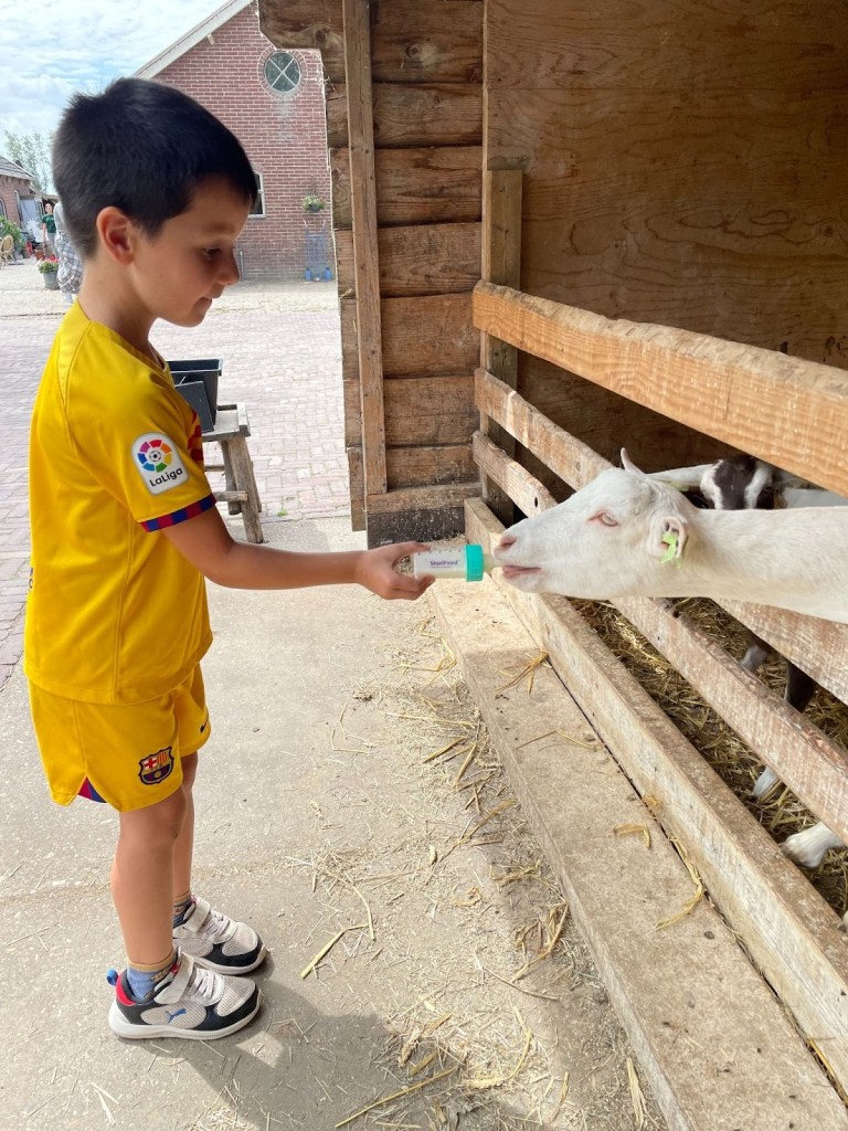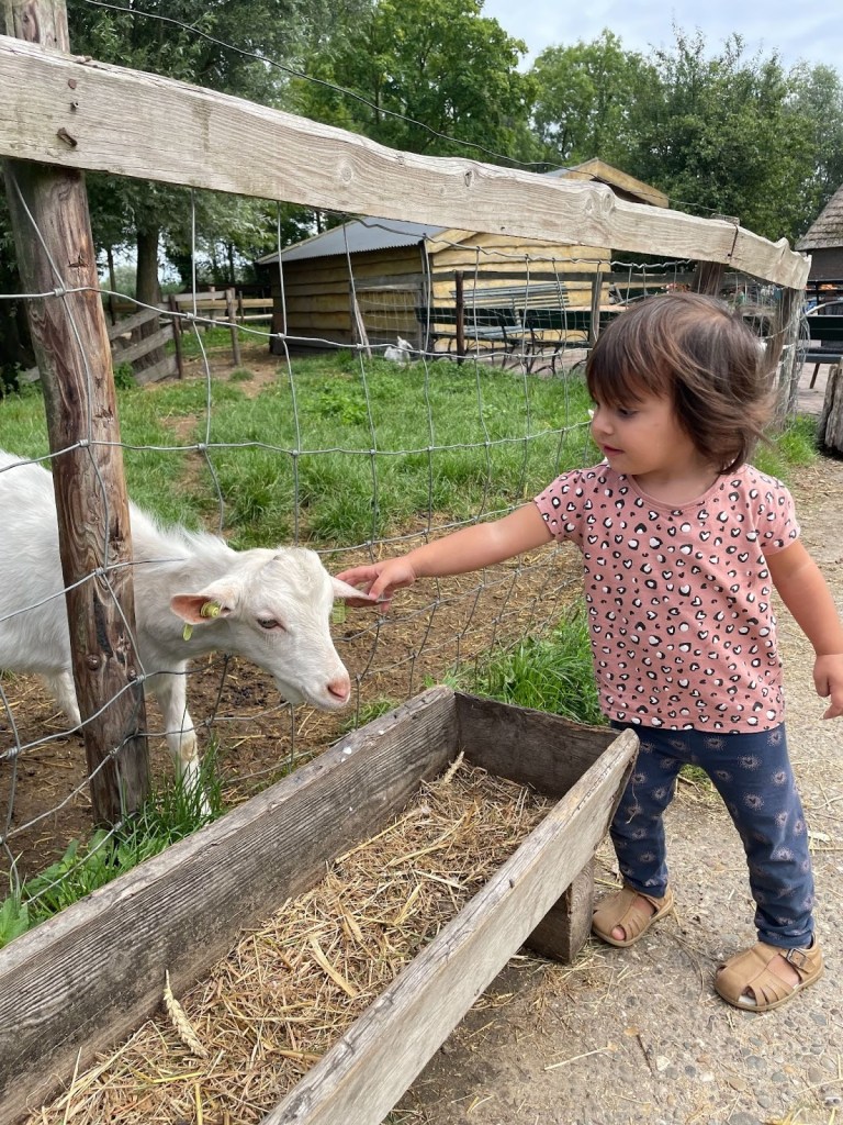 Así que, antes de llegar a Linschoten, hicimos nuestra primera visita en Holanda: Geertjes Hoeve en Utrecht, una granja con cabras, cerdos, ponis, un restaurante, una tienda, parque infantil… Es un sitio espectacular para los más pequeños. ¡Incluso puedes alimentar a las cabras de manera gratuita con unos pequeños biberones!